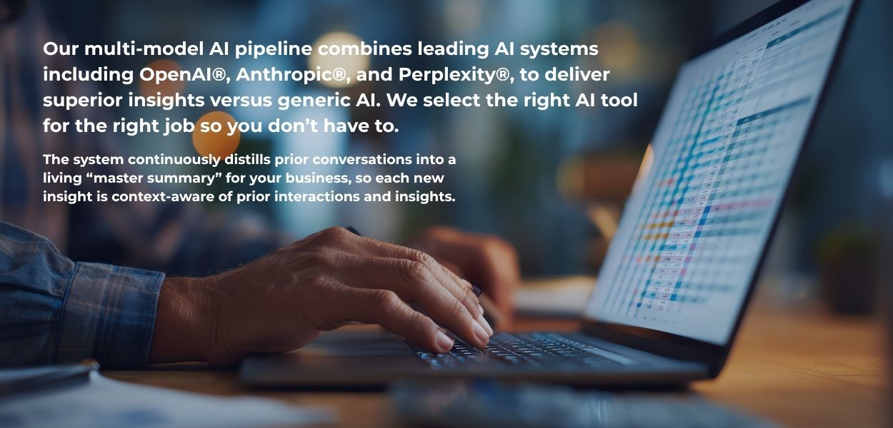 Large consulting firms rely on teams of analysts, proprietary research systems, and rigorous quality frameworks to generate strategic intelligence. Now you can offer comparable infrastructure – independently reviewed and rated at senior associate–level quality – at a fraction of the cost. Our Continuous Strategic Engagement (CSE) methodology and proprietary multi‑AI decision framework let you deliver decision‑ready analysis and execution with your judgment at the center.